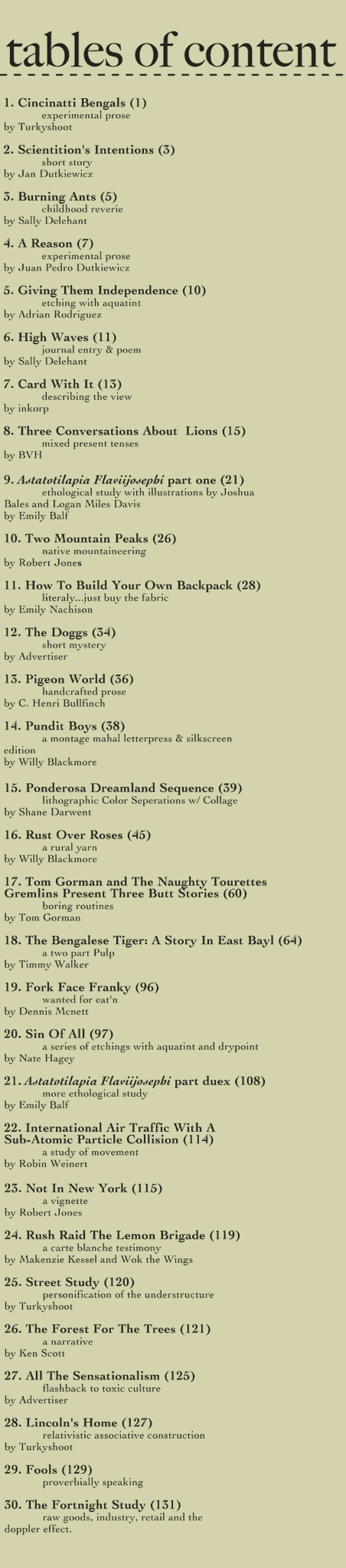 Working Journals Belly Full of Bird Shot The Buy Page Tables of Content Bookstores